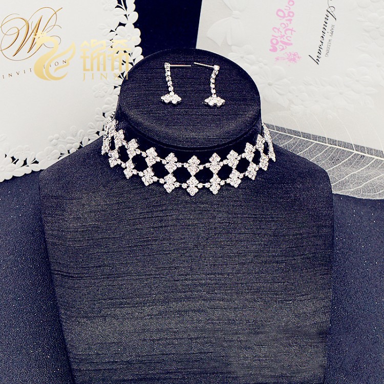 Набір: чокер зі стразами сережки "Stylish Figurine", срібло