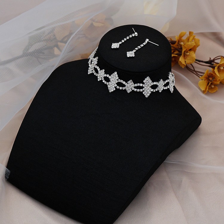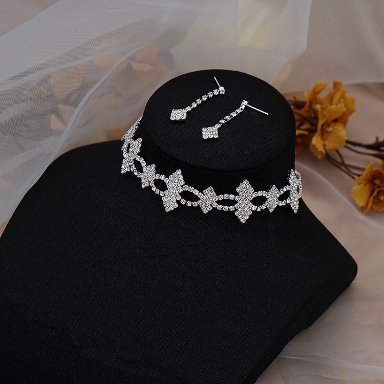 Стильний набір ідеально підкреслить вашу індивідуальність. Набір включає чокер та сережки зі стразами.