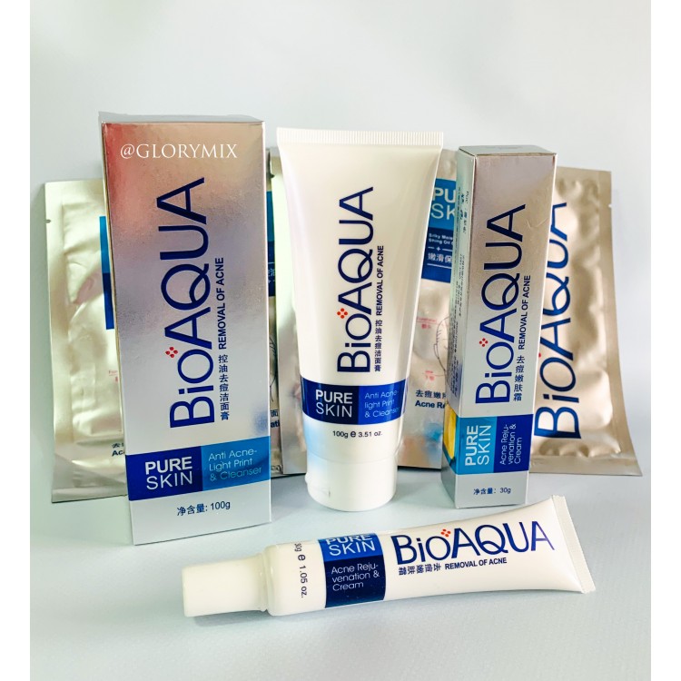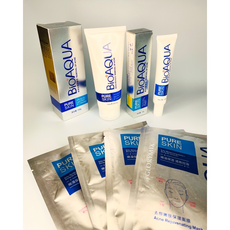 Набір для проблемної шкіри BIOAQUA Pure Skin анти-акне: пінка + крем + 4 тканинні маски