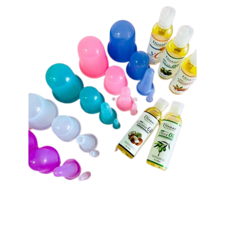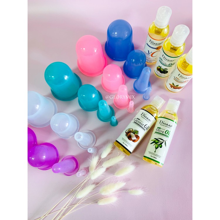 Набір для догляду за тілом: силіконові вакуумні банки для обличчя та тіла + масажна олія Disaar (на вибір)