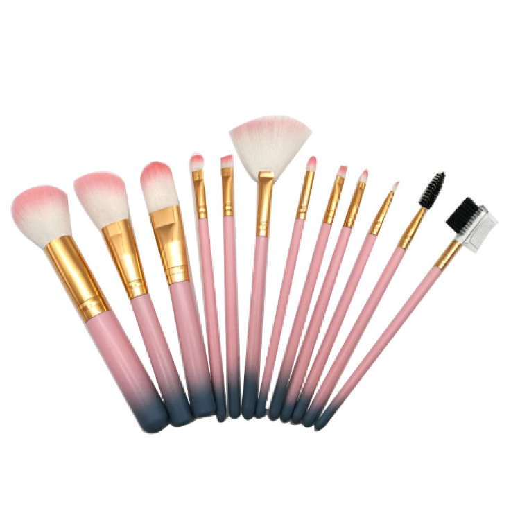 12 пензлів різних форм та розмірів - для нанесення тональних засобів, консилера, хайлайтера, пудри та рум'ян, а також - для макіяжу повік. Виготовлені із безпечного пластику та м'якого синтетичного ворсу.
