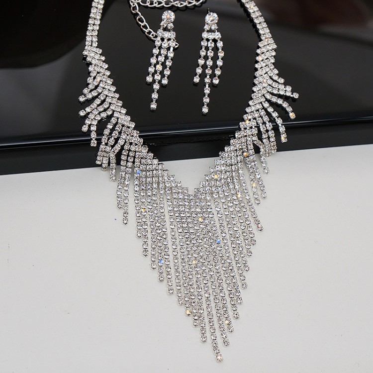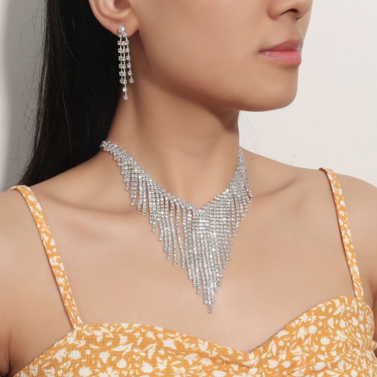 Набір: кольє зі стразами + сережки "Diana's Style", срібло