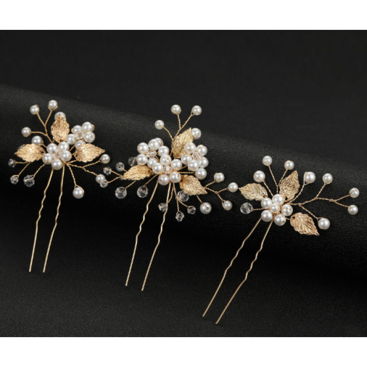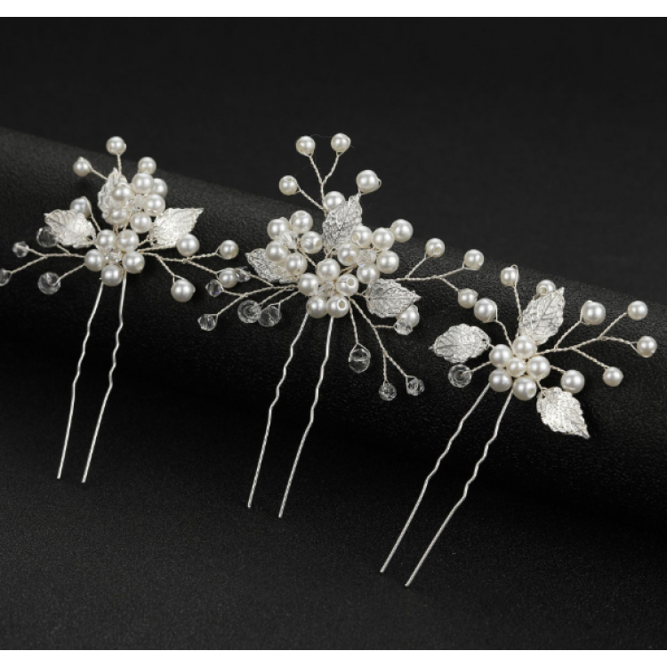 Набір шпильок для волосся з перлами, два кольори, 1уп (3 шт)