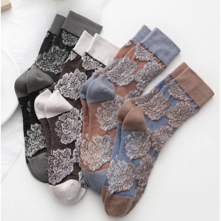Зручні і стильні шкарпетки в стилі Харадзюку, прикрашені квітами стануть улюбленим аксесуаром стильної дівчини. Крім привабливого забарвлення вони м'які, теплі і приємні для шкіри.