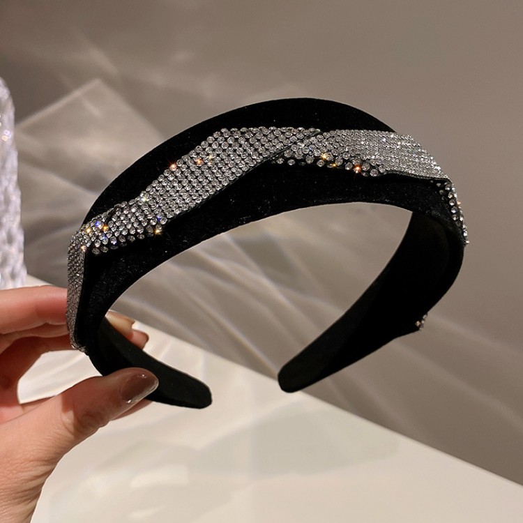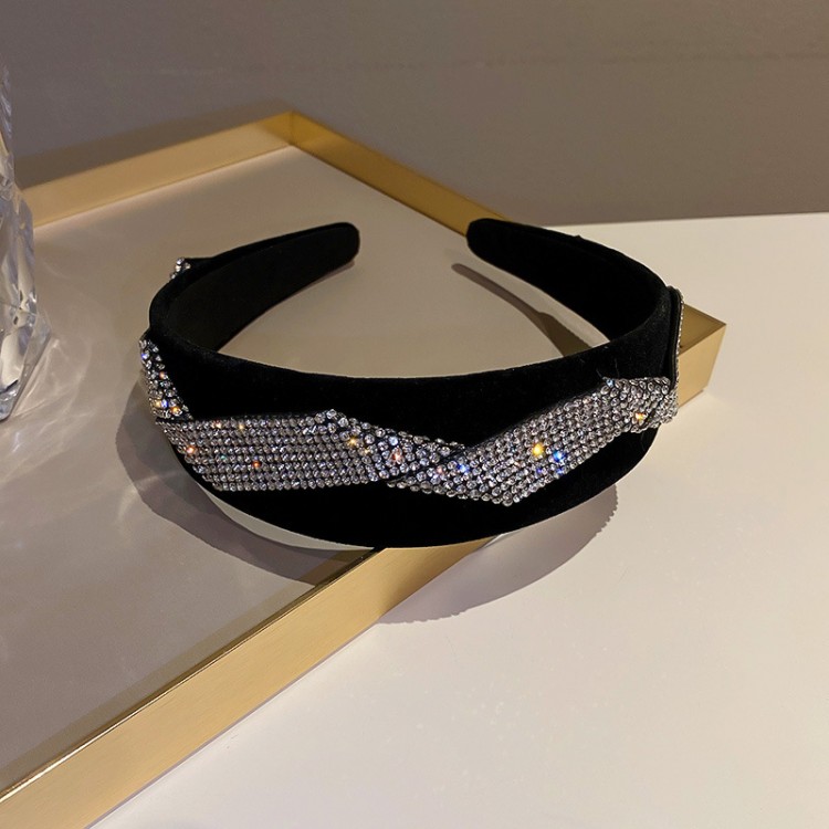 Обруч для волосся оксамитовий зі стразами "BlackStone", чорний