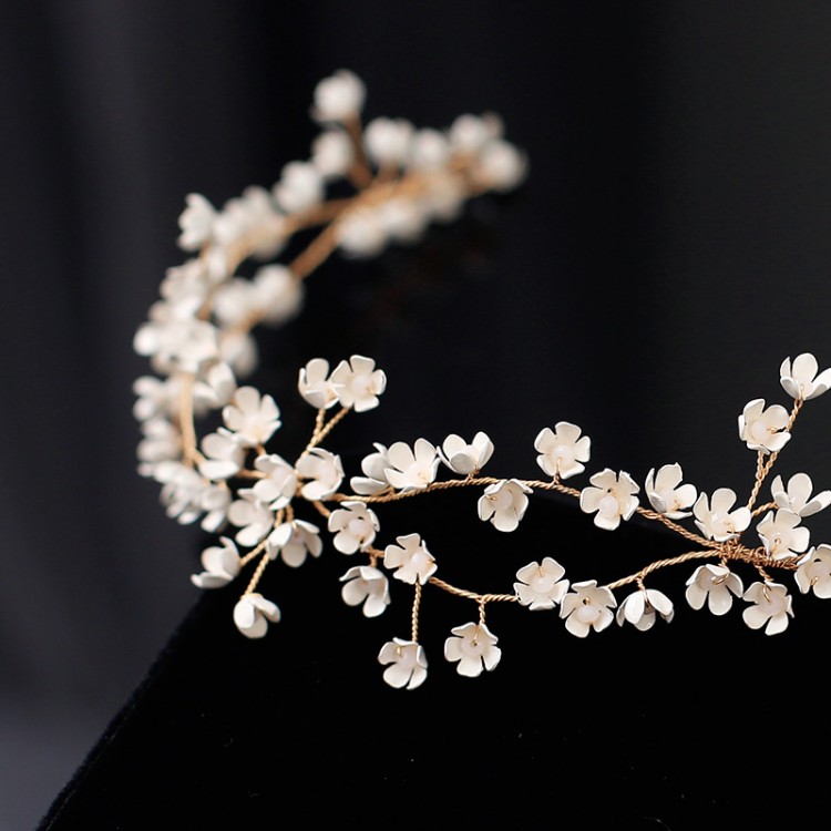 Обруч для волосся з дрібними квітами "Bride White Flowers", прикраса на голову, золото