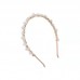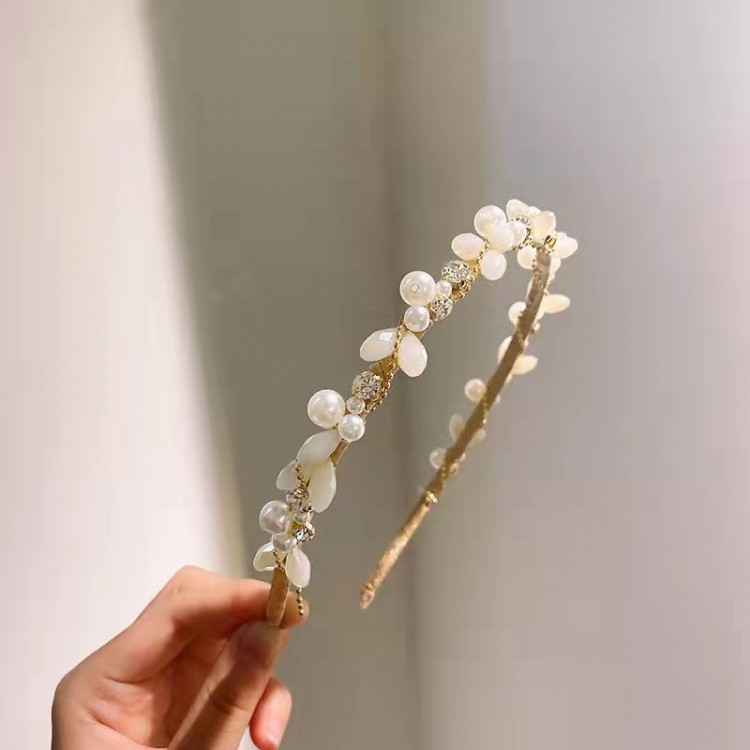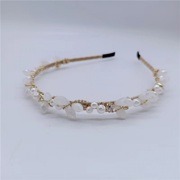 Обруч декорований білими перлами різного розміру та прозоро-білими кристалами, які красиво переливаються на світлі, підкреслюючи жіночність і стиль. Перли додають образу класичної елегантності, а кристали — сучасного блиску, завдяки чому прикраса виглядає гармонійно як у традиційних, так і в трендових образах. Золота основа забезпечує міцність та комфортну посадку, не обтяжує волосся і добре тримається протягом усього дня.
