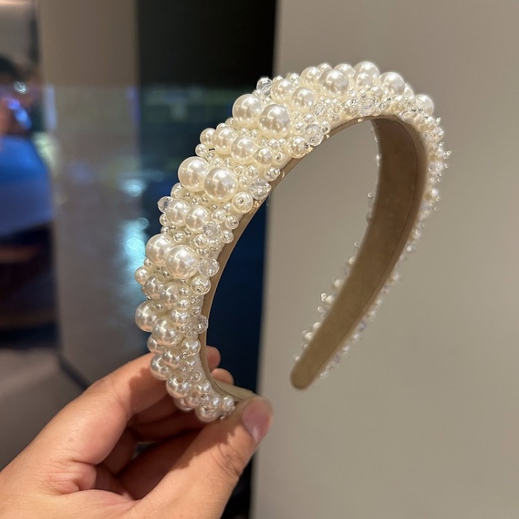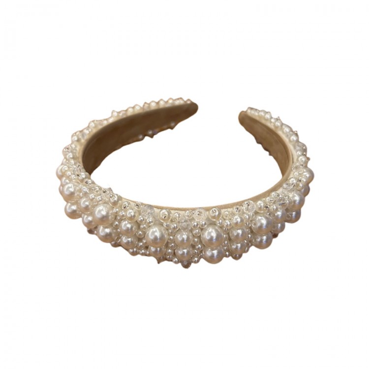 Обруч для волосся з перлами та кристалами "Wide Pearl Queen", прикраса на голову, білий