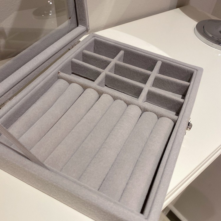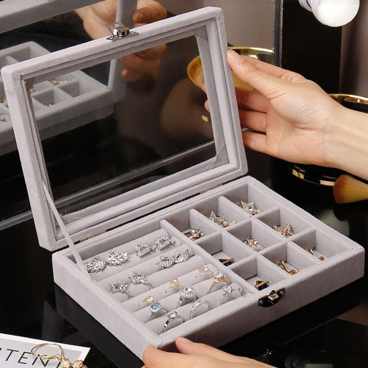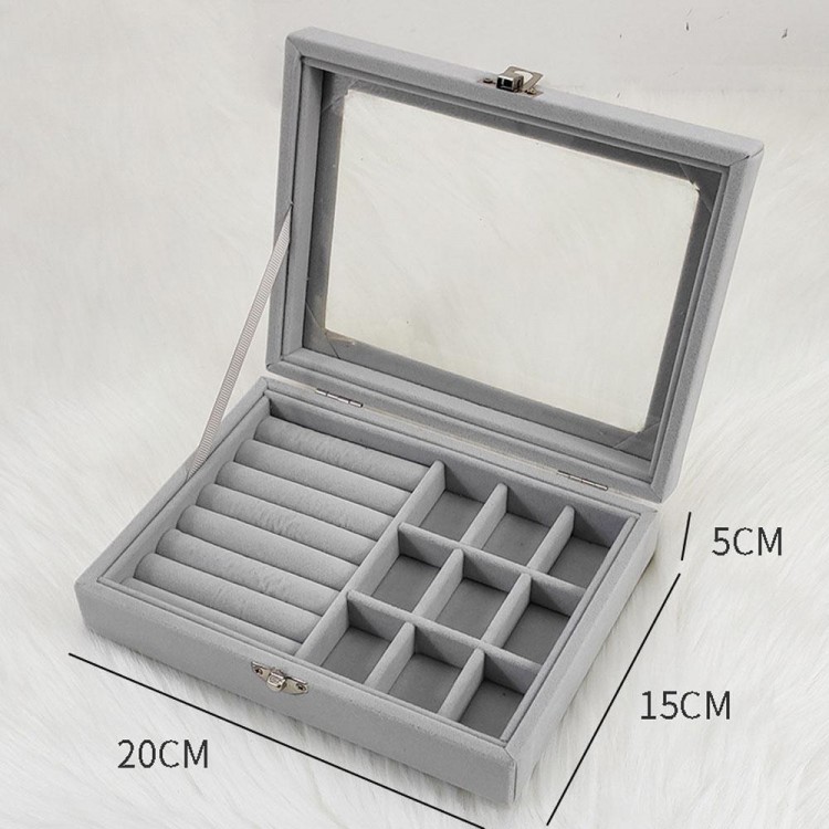 Органайзер зручно використовувати як для демонстрації товару в магазині, так і в домашніх умовах. Виготовлений із дерева, обтягнутий м'якою велюровою тканиною, також є скляна прозора кришка. Закривається на клямки.