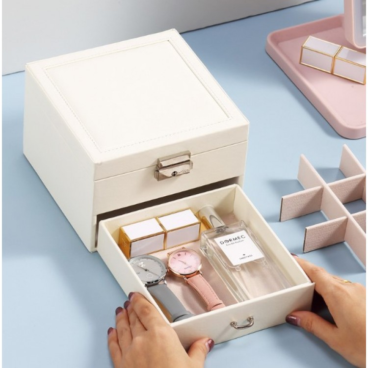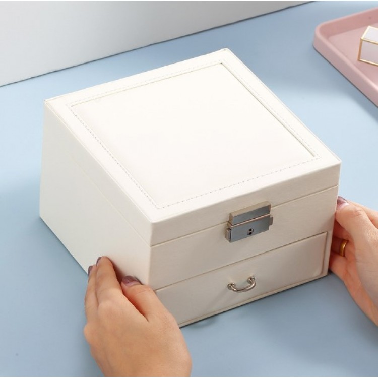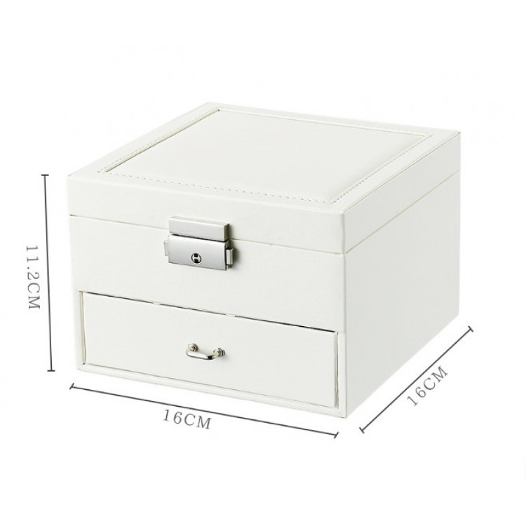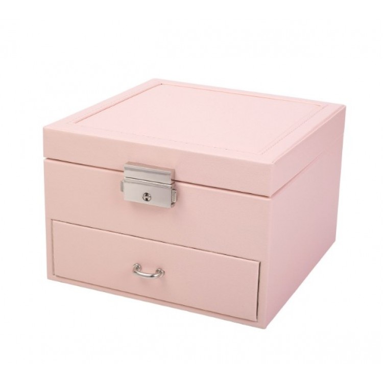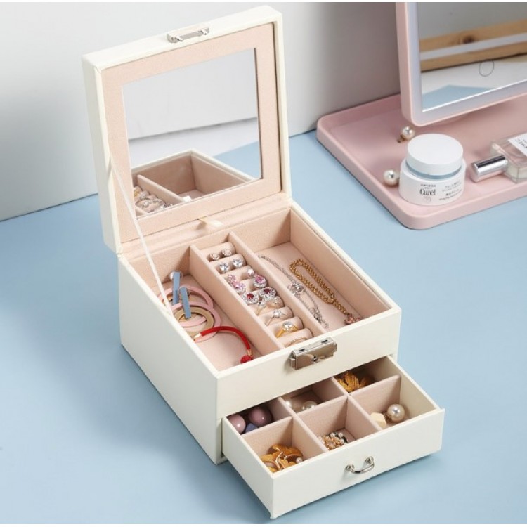 Органайзер для прикрас двоярусний, на ключику, із дзеркалом та висувною шухлядкою, 16×16×11 см