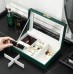Органайзер зручно використовувати як для демонстрації товару в магазині, так і в домашніх умовах. Обтягнутий екошкірою, також є скляна прозора кришка. Закривається на клямки.