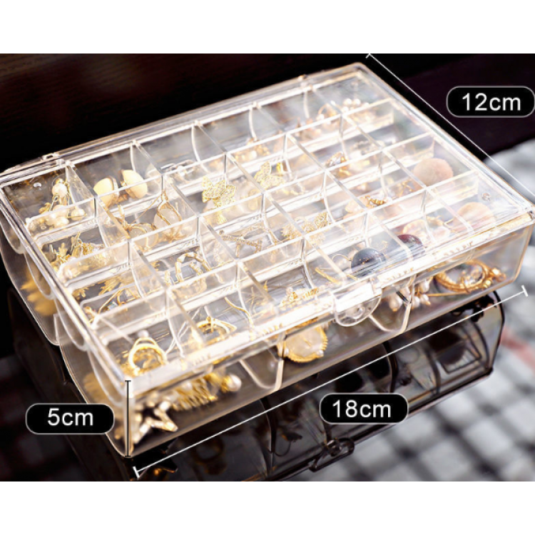 Органайзер для ювелірних прикрас, прозора скринька, 5х12х18 см, 30 відділень