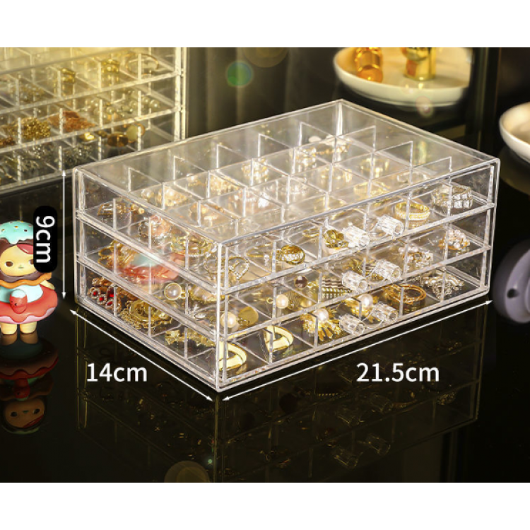 Органайзер для ювелірних прикрас, прозора скринька, 9х14х21,5 см, 72 відділення