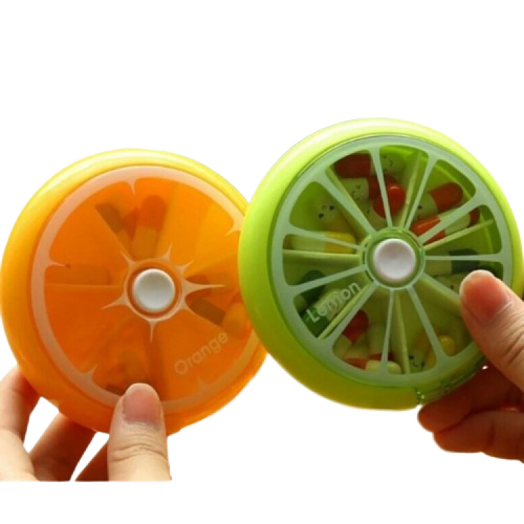 Органайзер круглий для таблеток на 7 відділень Crazy Fruits, кругла компактна таблетка на 7 відділень