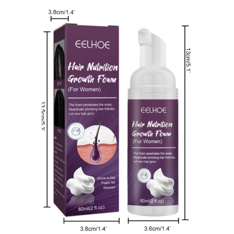 Eelhoe Hair Nutrition Growth Foam – інноваційний продукт, розроблений спеціально для жінок, які бажають активізувати ріст волосся, відновити його структуру та зупинити випадіння. Завдяки легкій текстурі пінка швидко проникає у шкіру голови, стимулює волосяні фолікули та живить їх корисними речовинами.