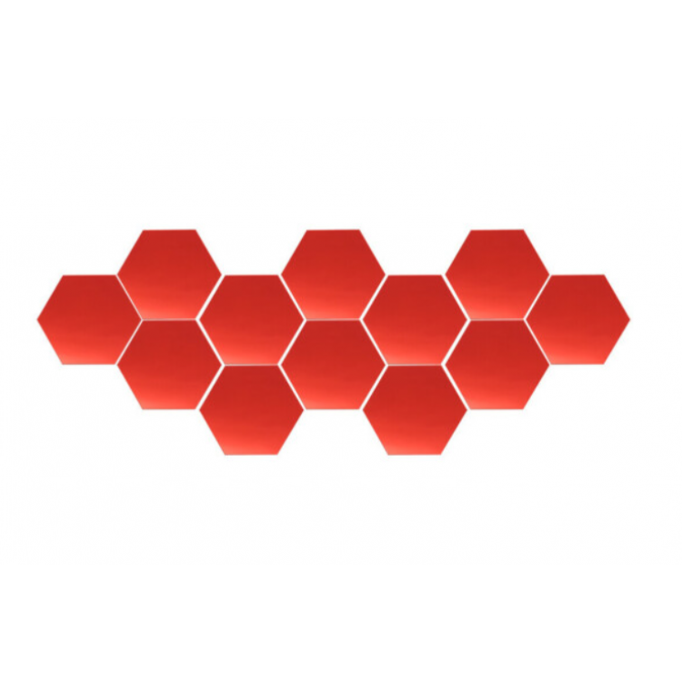 Плитка дзеркальна на стіну, самоклеюча, шестикутна, декоративна, червона, 1 уп (12 шт)