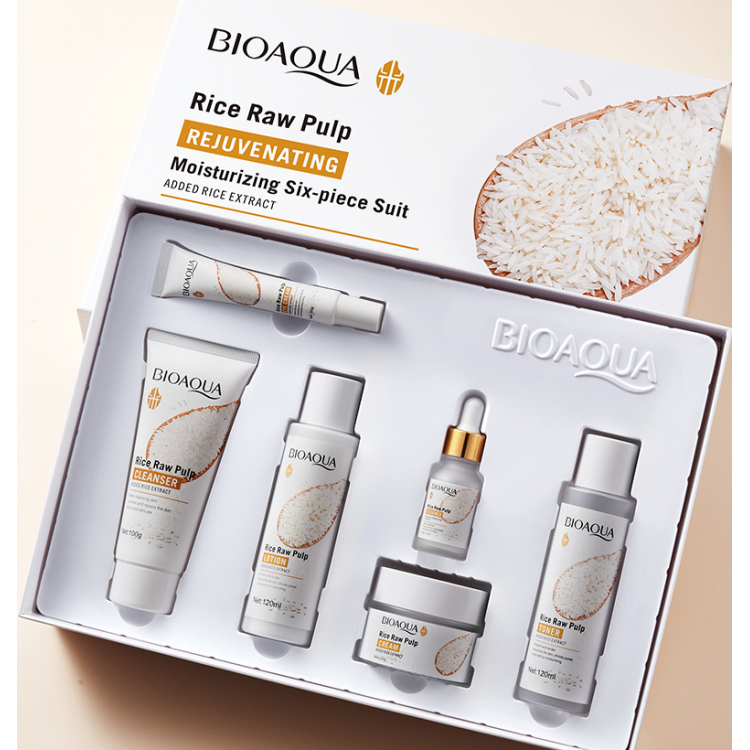 Подарунковий набір для обличчя, омолоджуючий, Bioaqua Rice Raw Pulp, з екстрактом рису, 6 засобів