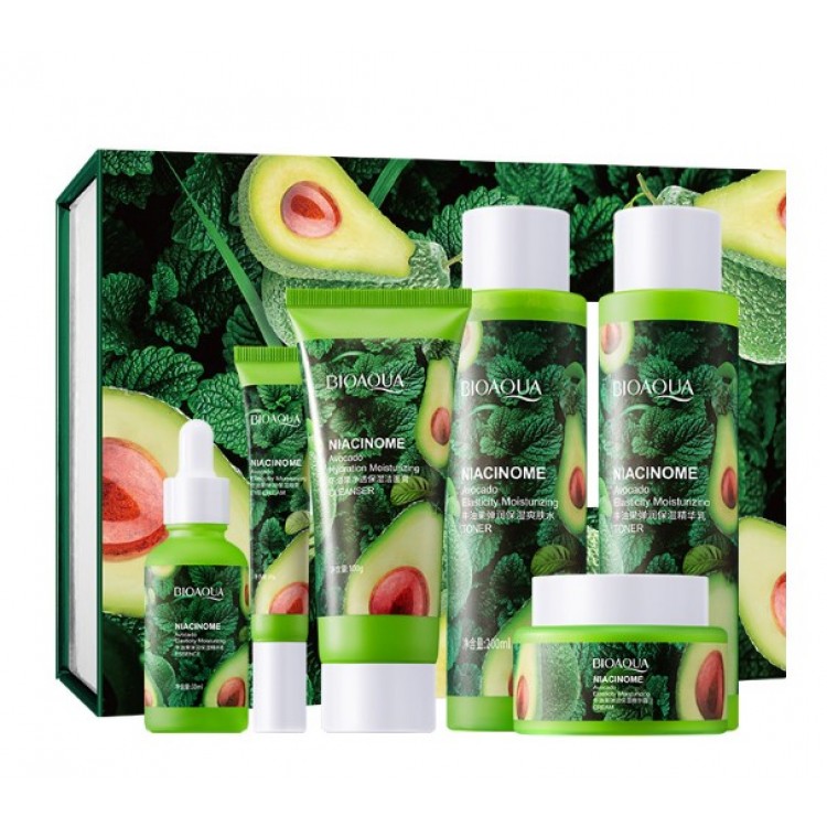 Подарунковий набір для обличчя Bioaqua Niacinome Avoсado, з авокадо призначений для інтенсивного зволоження та живлення шкіри. Підходить для всіх типів, але особливо рекомендується для сухої шкіри, що втратила тонус.