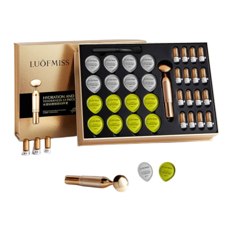 Подарунковий набір з вулканічной глиною Luofmiss Hydration (маски з вулканічною глиною, маски з центелою, кісточка, есенції, масажер)