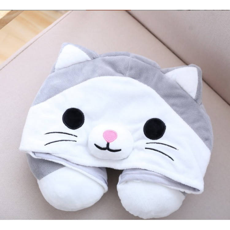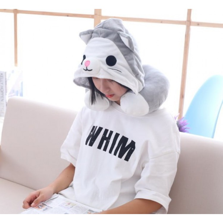 Подушка в дорогу з капюшоном "Сіра з Білим Кішечка", 1шт
