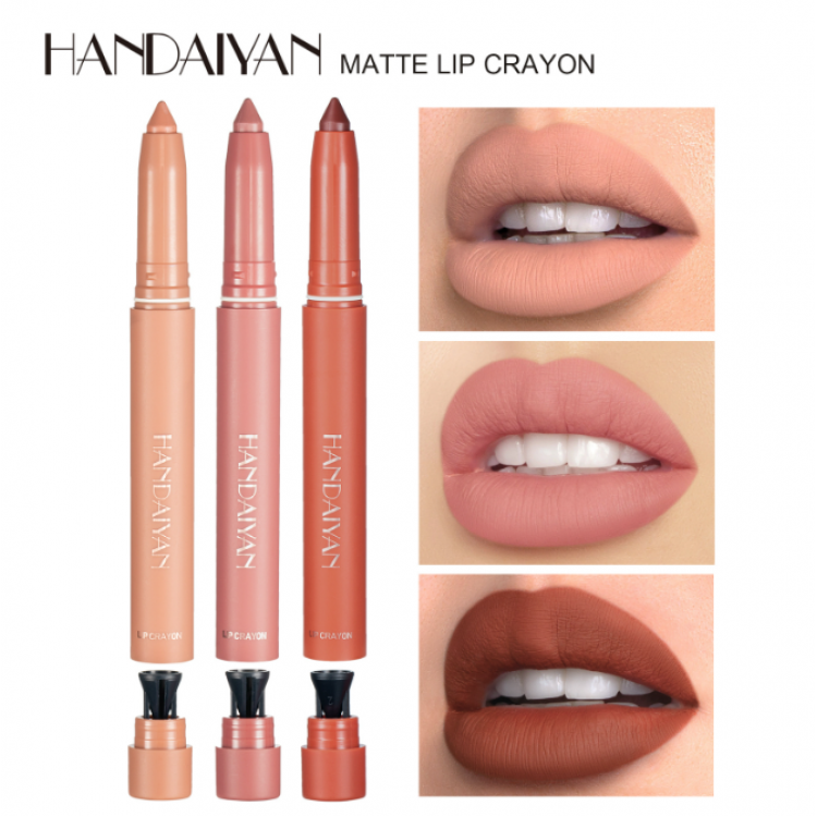 Матова помада-олівець для губ HANDAIYAN Matte Lip Crayon - помадою-олівцем дуже приємно користуватися. Неймовірно зручний механізм, сама помада у вигляді стіка дозволяє нанести консистенцію губи максимально чітко. Засіб має стійкі фарбувальні пігменти, не сушить губи, не розтікається.