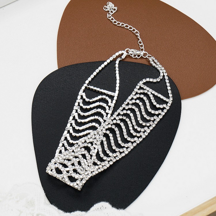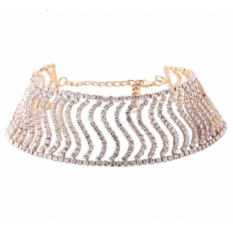 Стильный чокер в серебренном цвете, усыпан стразами для красивых и стильных девушек.