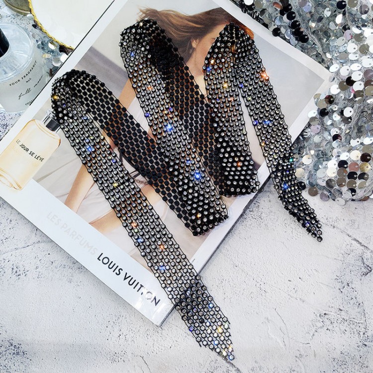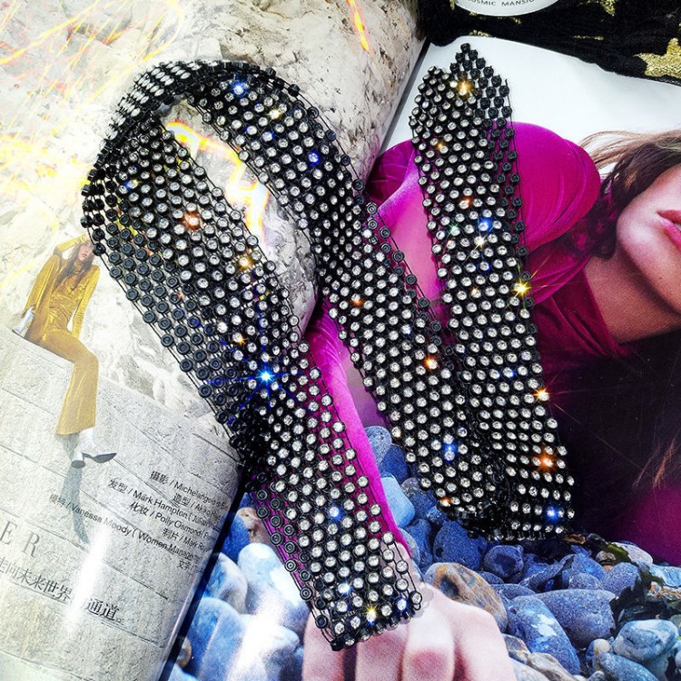Цепочка лента со стразами "Big Black Stone", черный