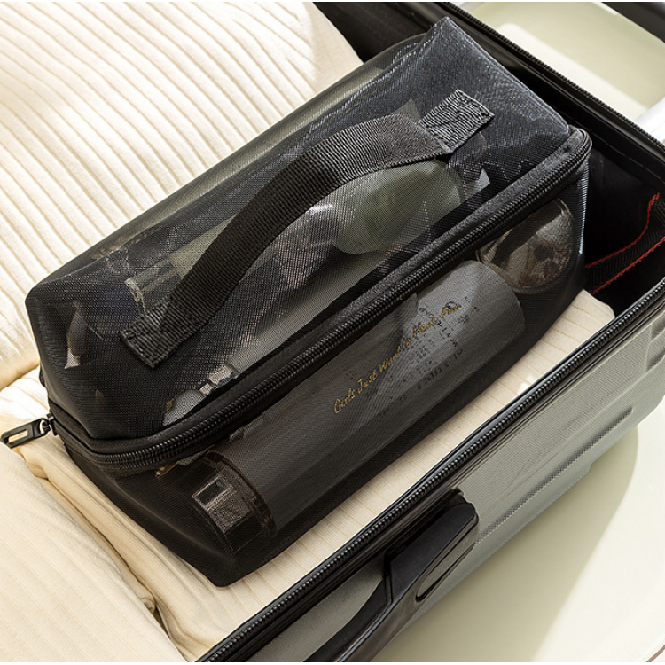 Косметичка двухслойная, сетчастая тревел косметичка, 3 цвета, 24х11х11 см