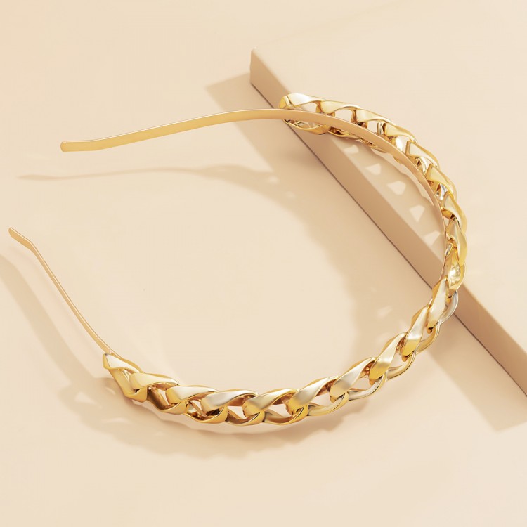 Ободок для волос "Golden Pigtail", обруч для волос косичка, золото