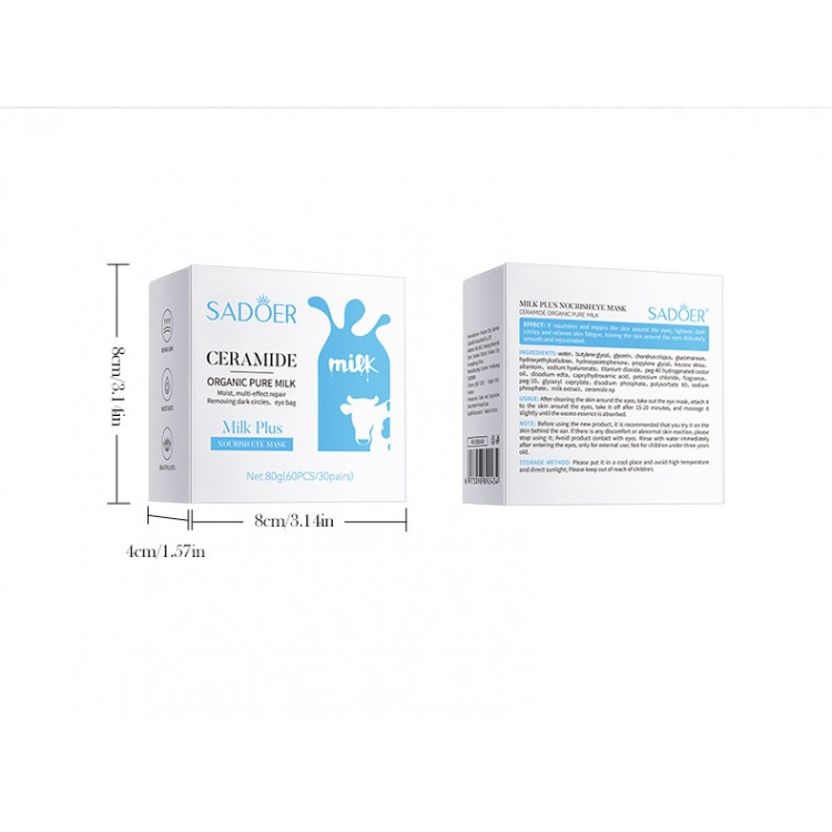 Патчи гидрогелевые Sadoer Ceramide Milk Plus Eye Mask, с церамидами, 60шт