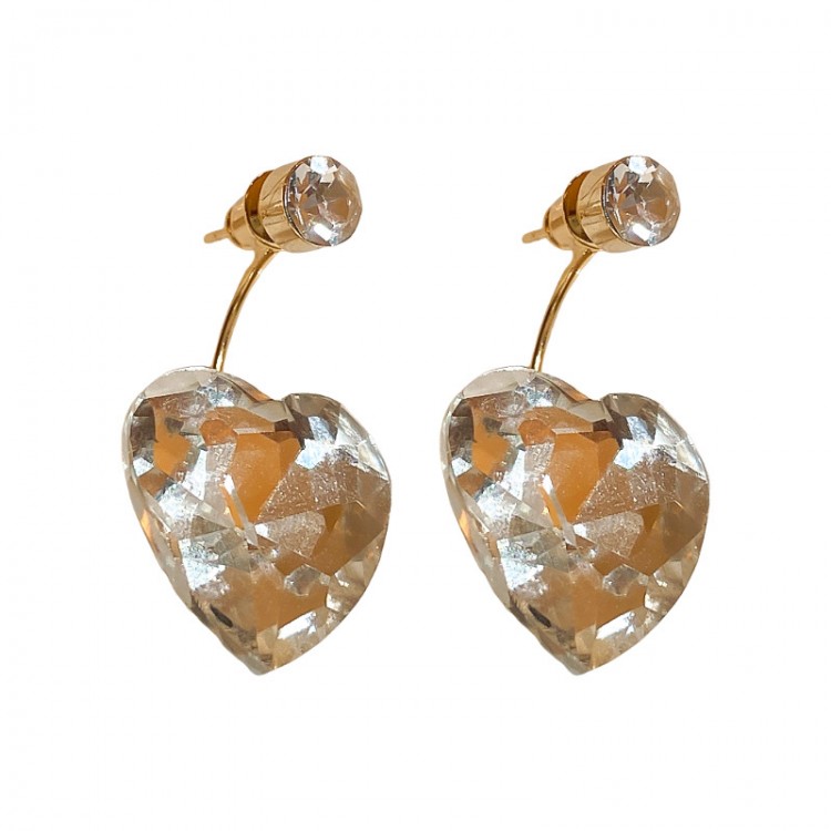 Серьги в форме хрустального сердца имеют невероятный и довольно уникальный дизайн, а золотые едва заметные ножки крепления придают нотку элегантности и изысканности этому украшению.
