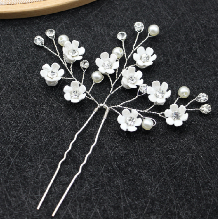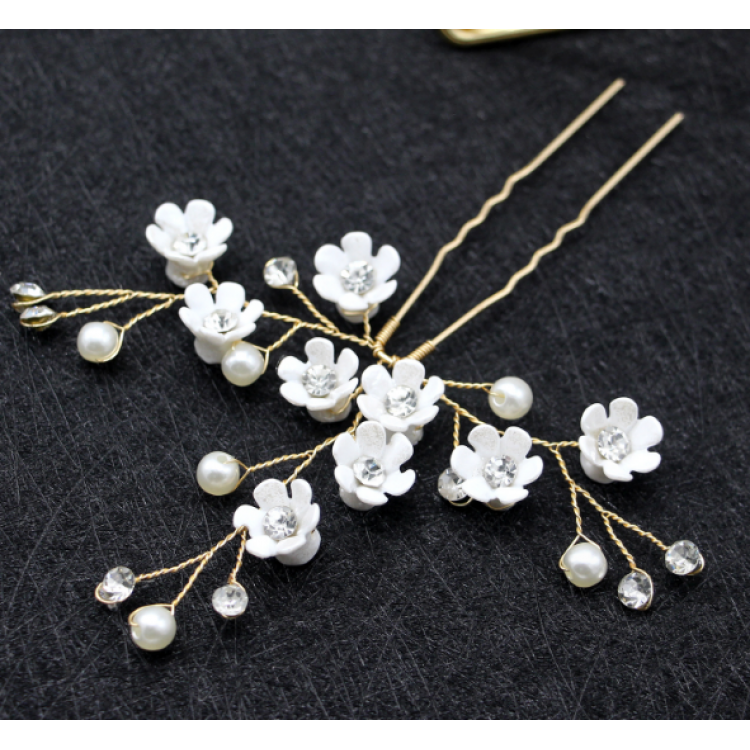 Шпилька для волос с жемчугом и стразами "White Flower", два цвета