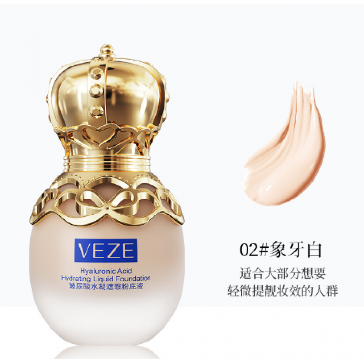 Тональный крем увлажняющий Veze Hyaluronic Acid Hydration Liquid Foundation, с гиалуроновой кислотой, тон 02 слоновая кость, 30 мл