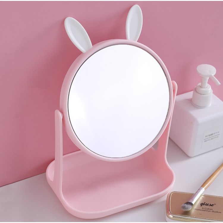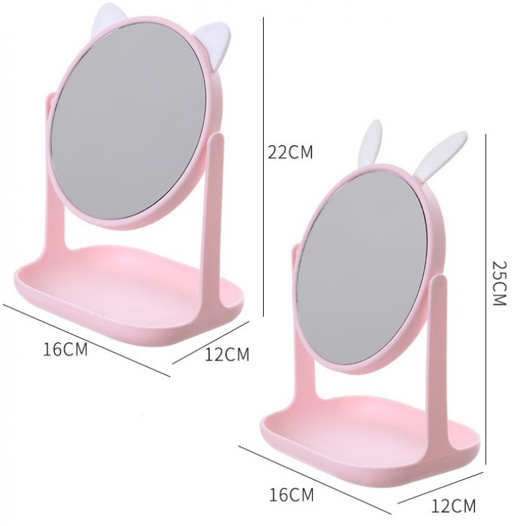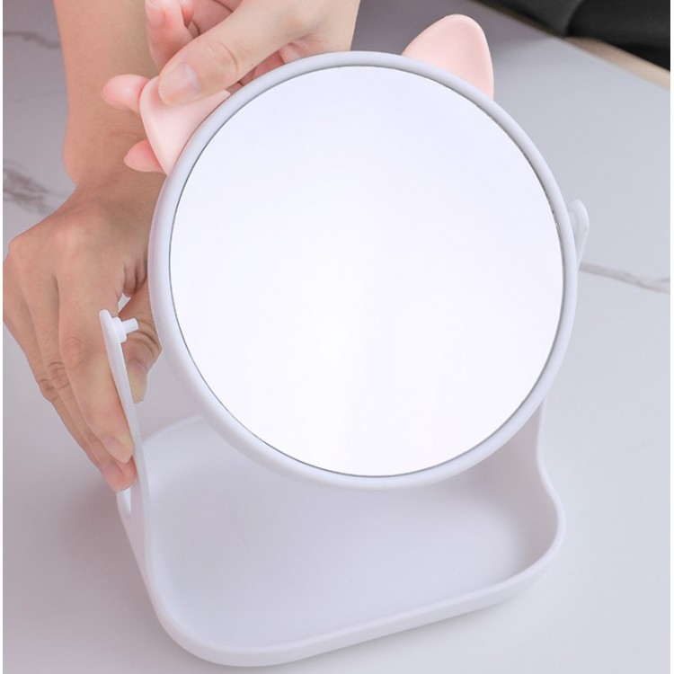 Зеркало косметическое с ушками зайчика и котика, на подставке с органайзером, 2 цвета
