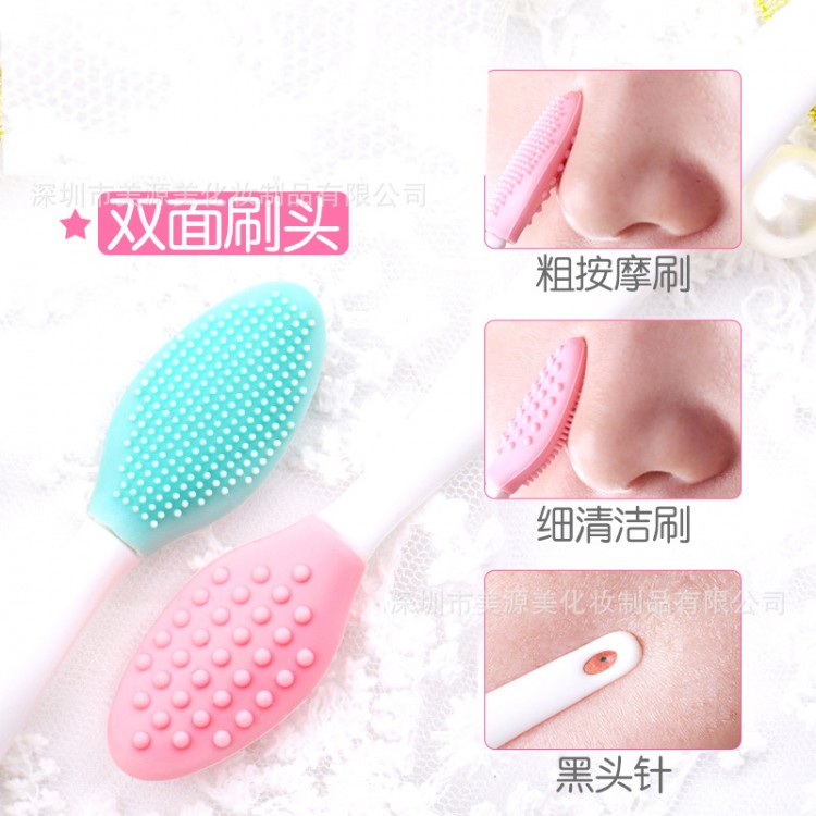 Щітка масажна двостороння для очищення носа від чорних цяток, силіконова