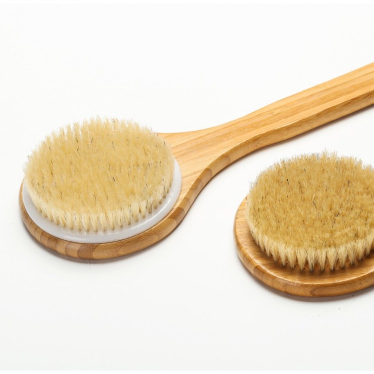 Одностороння щітка з натурального волокна. Ідеально підходить для щоденного догляду за тілом. Міцна дерев'яна ручка забезпечує зручне використання. М'яка щітка очищує тіло від мертвої шкіри, а дерев'яні наконечники - приємно масажують його, стимулюючи циркуляцію і знімаючи м'язову напругу.
