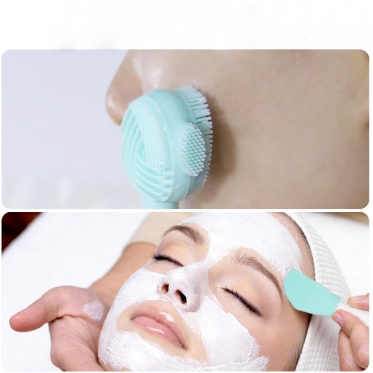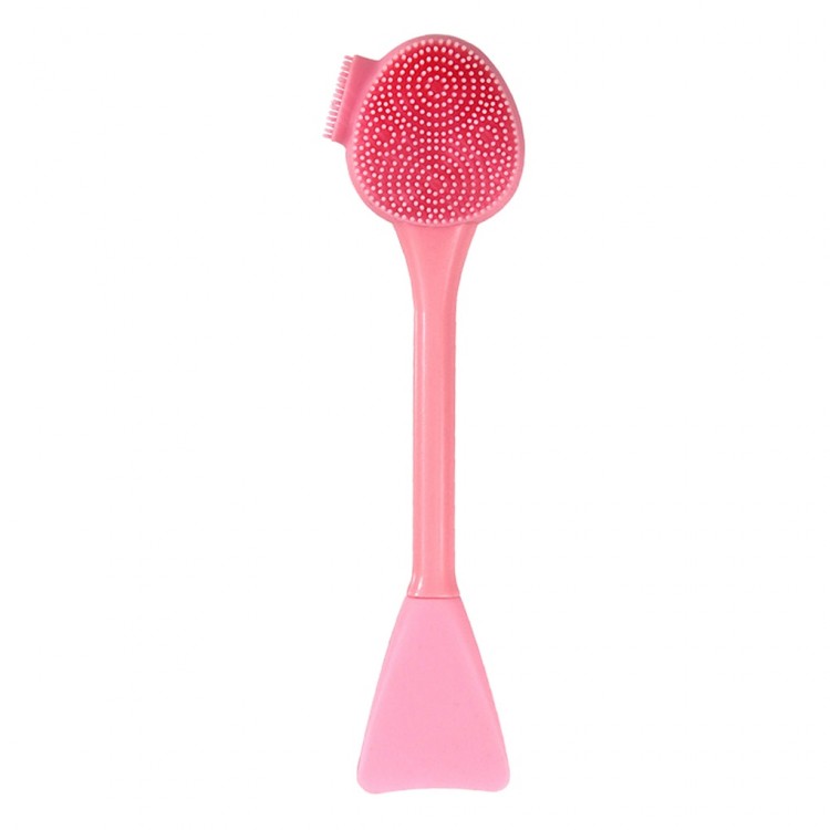 Щітка силіконова двостороння для очищення шкіри обличчя із загостреною лопаткою для нанесення масок, різні кольори