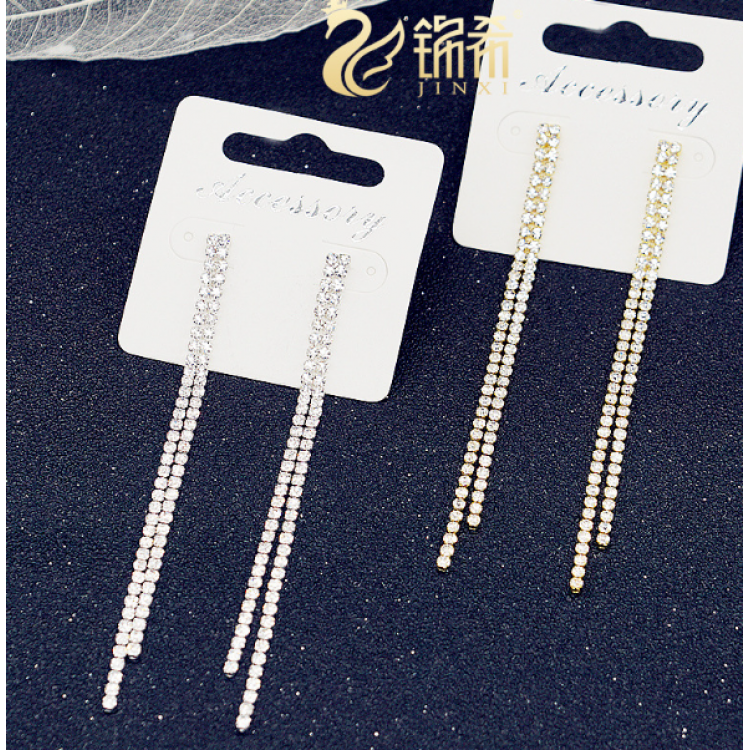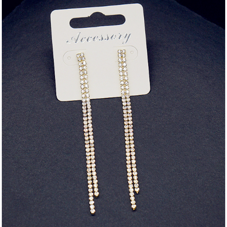 Сережки зі стразами у два ряди "Silver Moon", два кольори