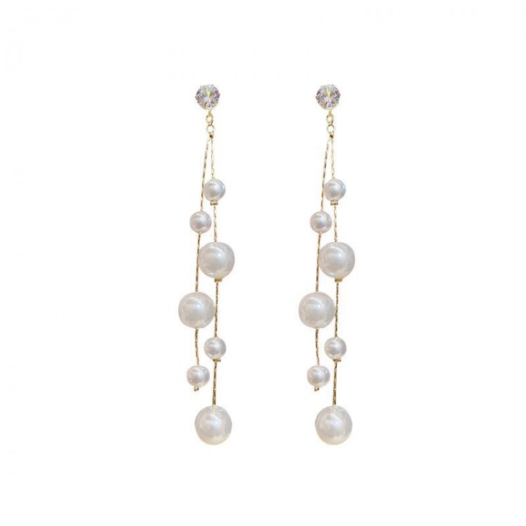 Ці вишукані довгі сережки прикрашені перлами різних розмірів, що надає їм елегантного та романтичного вигляду.