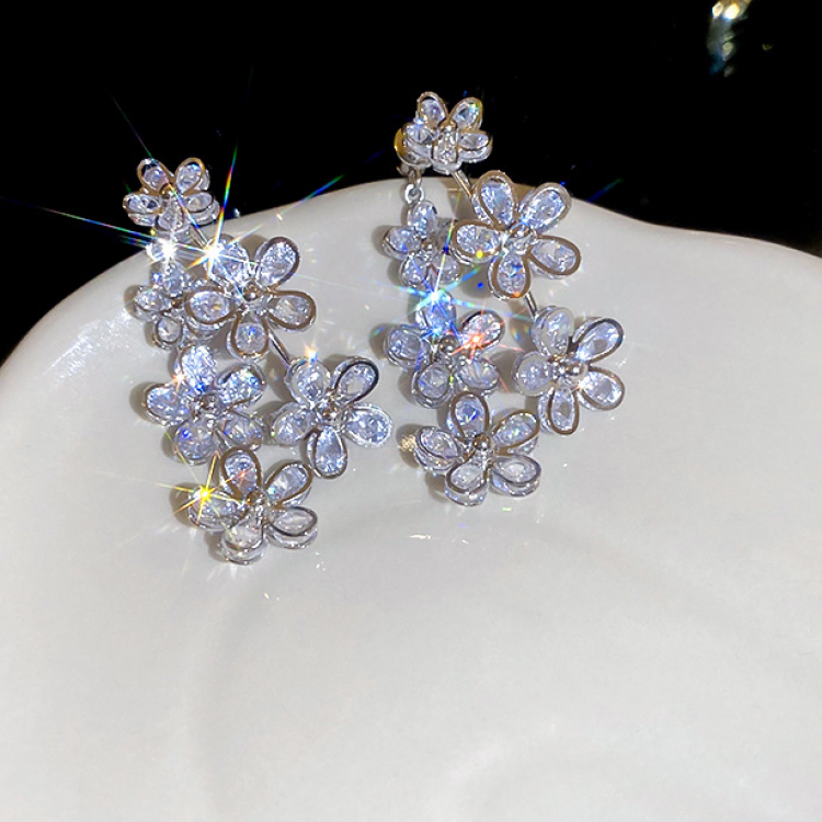 Срібна оправа додає нотку стриманої витонченості, а мерехтливі камені створюють захоплюючу квіткову експозицію.