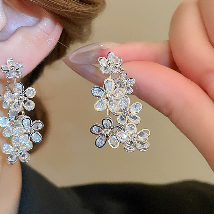 Ці елегантні сережки мають витончене скупчення блискучих кристалів, які каскадом спадають донизу.