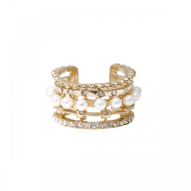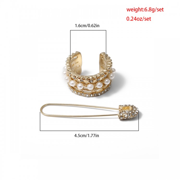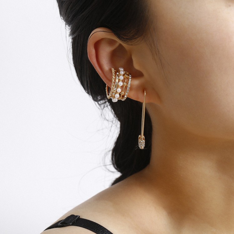 Сережка кафф з перлами і стразами "Luxury Hairpin", набір 2 шт, золото