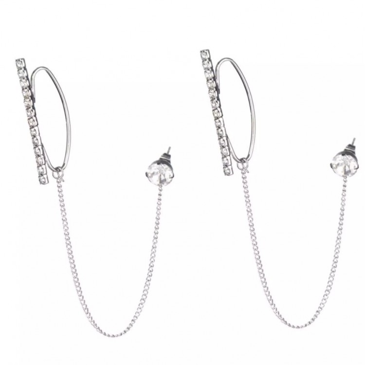 Сережка кафф зі стразами "Silver Hairpin", набір 2 шт