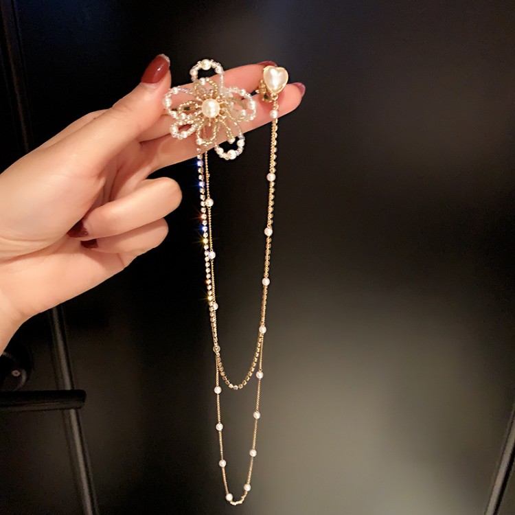 Незвичайна прикраса 2в1: ніжна каффа з довгим ланцюжком і яскрава невидимка для волосся з великою квіткою!