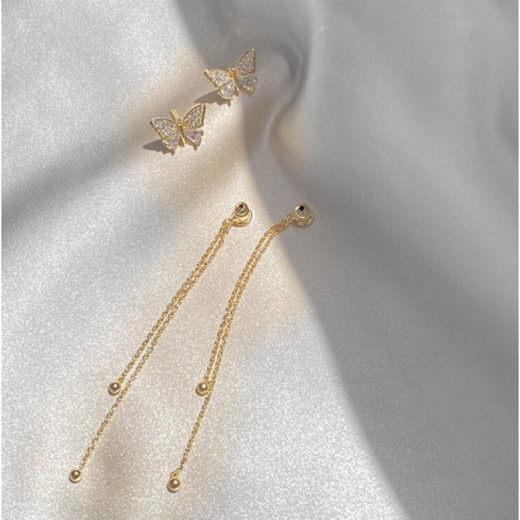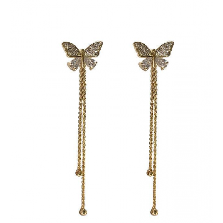 Сережки метелики із камінням та нитками "Golden Butterfly", золото