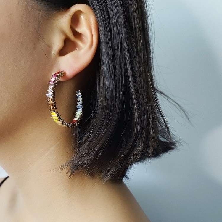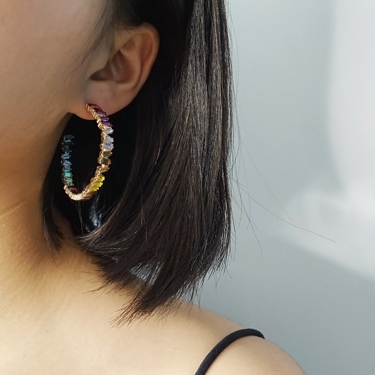 Сережки з різнокольоровими каменями "Rainbow Stones", золото