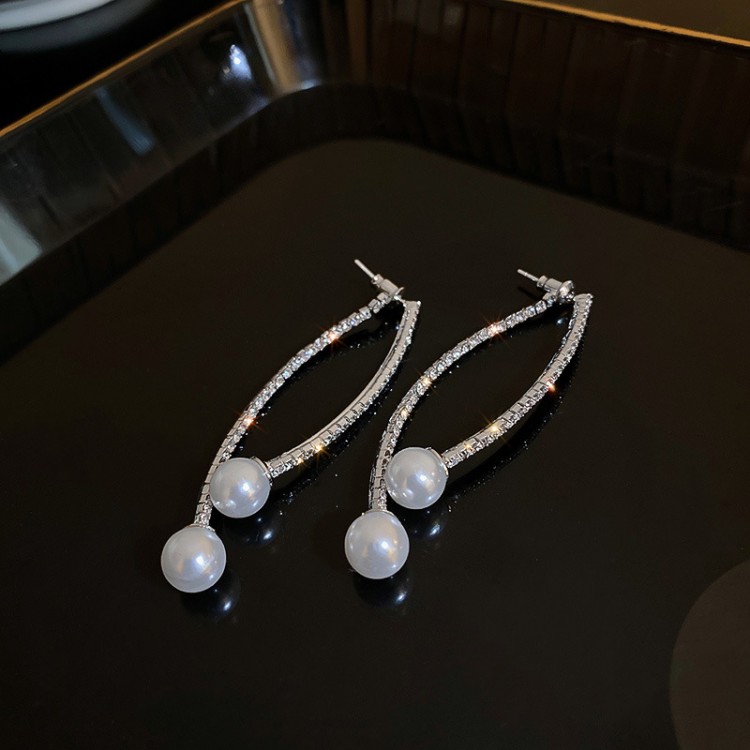 Стильні сережки, рясно всипані камінням та прикрашені великими перлинами. Добре поєднується з іншими прикрасами.