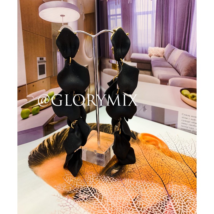 Шалено стильні сережки темно-червоного кольору у вигляді переплетених пелюсток, які гідно прикрасять Ваш образ, додадуть пікантності.