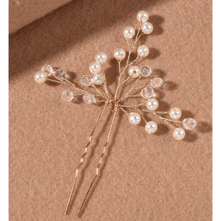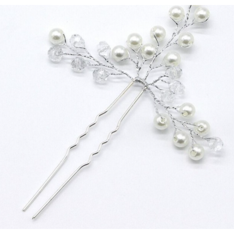 Шпилька для волосся з перлами та кристалами, два кольори, 8х11 см