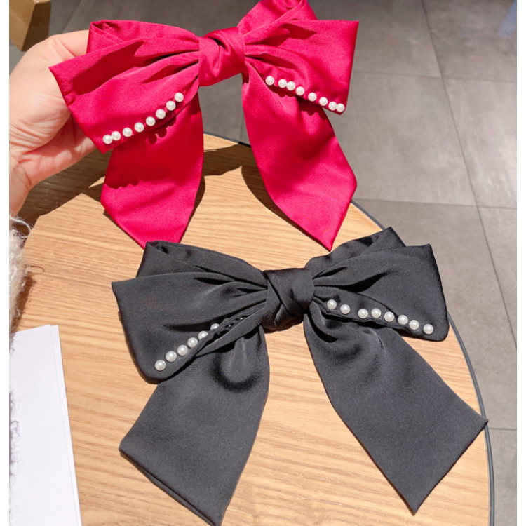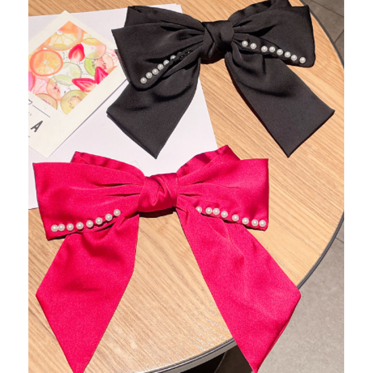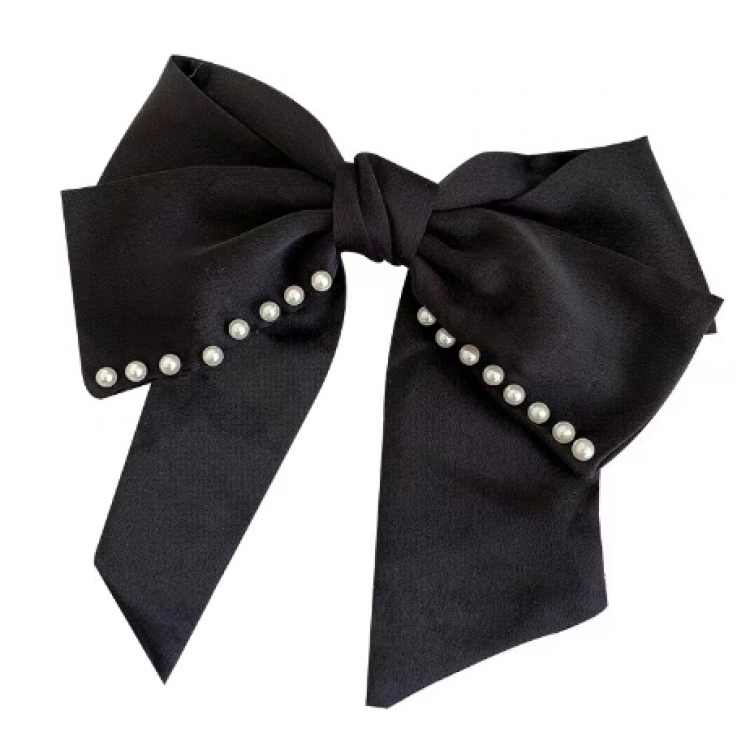 Шпилька - бант для волосся, атласний бант для волосся з перлами, чорний, 20х21 см